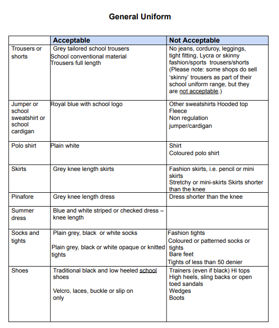 Please note: Whilst we understand that, as the school academic year comes to an end, your child may grow out of their school shoes, we still wish to maintain standards and the school uniform rules still apply. Trainers may be worn with school PE kit.